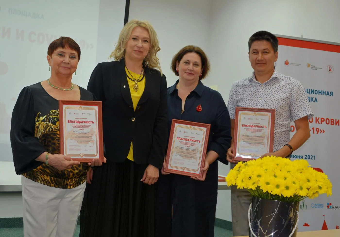 Вручены благодарственные письма Общественной палаты Российской Федерации «За вклад в развитие донорства крови» руководителям регионального министерства здравоохранения и Станции переливания крови, сотрудникам СПК КО, партнёрам по корпоративному донорству крови, активным донорам и волонтёрам - организаторам донорского движения.