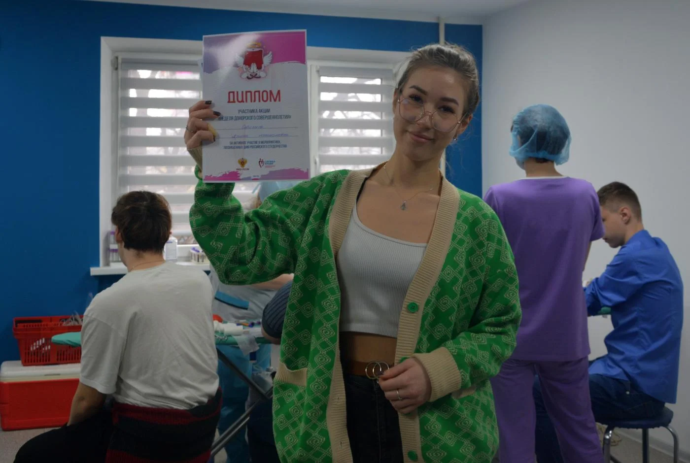 За активное участие в мероприятиях, в формате Дня российского студенчества, донорам вручали Дипломы участника акции «Неделя донорского совершеннолетия», открытки и многое другое.