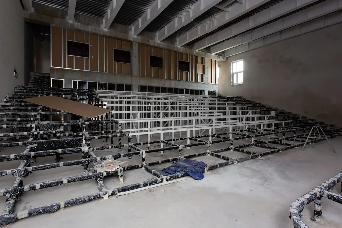На строительной площадке трудятся в среднем по 400 человек ежедневно. На объекте активно ведется отделка внутренних помещений, монтаж фасада, слаботочных систем, водоснабжения и водоотведения. С декабря прошлого года здание отапливается, что дало возможность ускорить темп работ.
