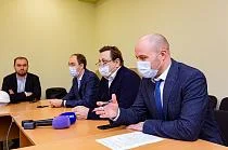 Вместе с ним её посетили министр строительства и ЖКХ Сергей Черномаз, руководитель онкоцентра Кирилл Баринов, представители подрядной организации.