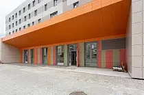В настоящий момент полностью выполнены конструктивы основного здания, кровля, вставлены окна. Подрядчик ведет отделочные работы на всех этажах – гидроизоляцию полов, облицовку стен керамической плиткой, устройство покрытия полов керамической плиткой. Устанавливаются дверные блоки и вентиляционное оборудование, идет монтаж слаботочных систем и систем энергоснабжения. В завершающей стадии работы по благоустройству и ограждению территории.