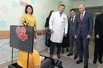 Также губернатор прошел и по другим отделениям больницы. Посмотрел, как работают онкологическое, терапевтическое отделение, дневной стационар для детей с заболеваниями органов зрения, а также пищеблок. Оборудование в последнем было решено в ближайшее время обновить. Еще одним из предметов внимания главы региона стал новый реанимобиль. Обновление автотранспорта в медучреждении в этом году прошло согласно задачам нацпроекта «Продолжительная и активная жизнь».