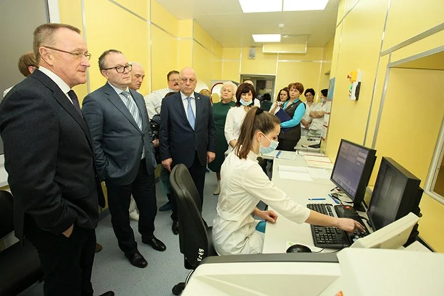 В этот же день гости побывали в Калининградской областной клинической больнице, в которой осмотрели корпус для оказания экстренной медицинской помощи, открытый в апреле 2015 года и включающий в себя диагностический блок с 256-срезовым компьютерным томографом, рентген-комплексом, две экстренные операционные, экстренную приемную.